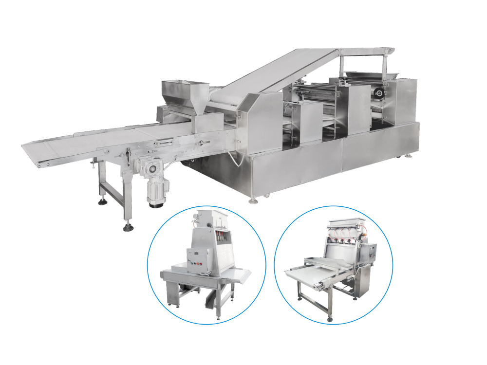 型號(hào)  型號(hào)500/600/700型  生產(chǎn)流程  拌漿機(jī)將糖漿加熱攪拌均勻→和面→面團(tuán)擠出輸送→面餅成型→一次烘烤→噴糖→二次烘烤→冷卻  特色  1、成型機(jī)為變頻調(diào)速,自動(dòng)化程度高,更換模具可生產(chǎn)多規(guī)格產(chǎn)品?! ?、電烤爐通過加熱管加熱,并進(jìn)行了合理的爐溫分區(qū),節(jié)能環(huán)保的同時(shí)還具有升溫快,降溫少,補(bǔ)溫快等特點(diǎn)?! ?、整套設(shè)備自動(dòng)化程度高、操作簡單方便,可生產(chǎn)出多品種、多規(guī)格的產(chǎn)品。減輕勞動(dòng)力,節(jié)省人工成本出品穩(wěn)定,輕松實(shí)現(xiàn)量產(chǎn)化?! ?、機(jī)器安全、防護(hù)、可靠、穩(wěn)定性高。電氣安全符合國家標(biāo)準(zhǔn)?! ?、可以根據(jù)客戶場地及工藝要求進(jìn)行定制?! ‰娍緺t技術(shù)參數(shù)