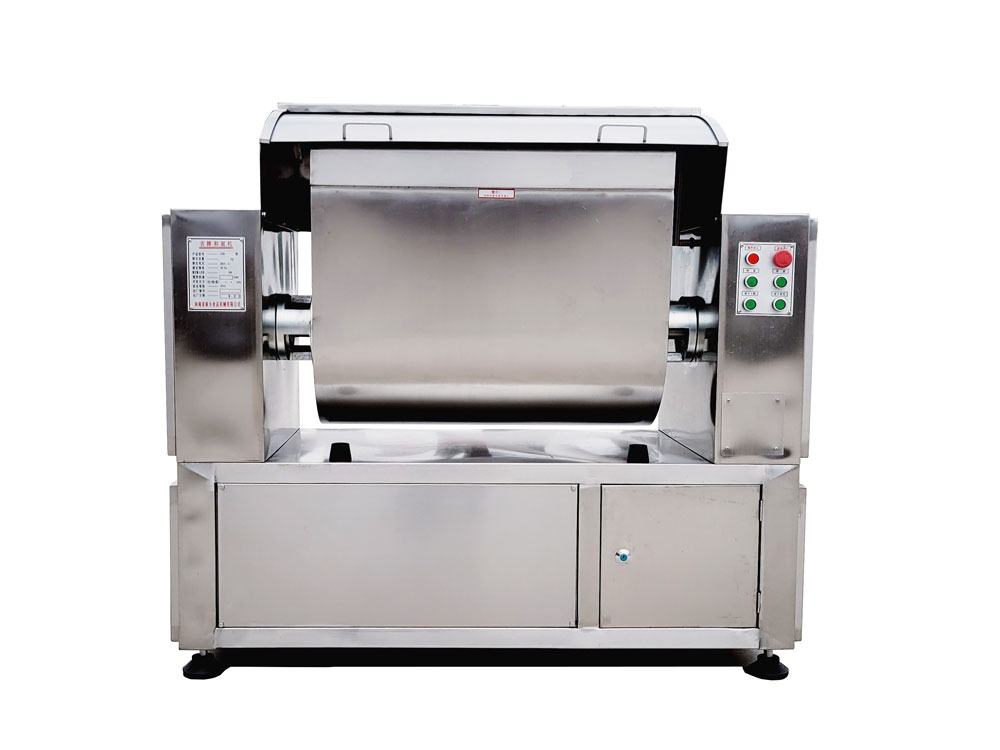 →新型臥式不銹鋼(攪拌)和面機  →型號12.5/25/50/75/100/150/200型  →功能  適合攪拌各種韌性面團。以制作饅頭、餃子、餛飩、包子皮等。更換攪拌器,還可和制作酥性面團,以制作各類糕點、湯圓、餅干以及各種餡料。  同時還適用于化工醫(yī)藥等行業(yè)中的同類作業(yè)。是部隊、機關、學校、酒店、廠礦、食堂可選產(chǎn)品。  →特色  1、和面機采用花籃式軸套設計,有效防止面團受到污染,進一  步提高食品安全?! ?、面斗可90度下翻,輕松將攪拌好的面團自動排出,節(jié)省勞動力。  3、設備配備安全防護裝置,開蓋自動停機,確保操作人員安全。  4、整機結構美觀大方,操作方便,噪音小,性能穩(wěn)定可靠?!  饕夹g參數(shù)產(chǎn)品型號額定容量(kg)攪拌轉速(rpm)主電機(kw)副電機(kw)外形尺寸(長×寬×高)HWH12.5型12.5261.5640×440×725HWH25型25302.2816×437×1050HWH 50型50263.750.551326×632×1350HWH 75型75263.750.551427×632×1310HWH100型100263.750.551527×632×1310HWH150型150257.51.51664×822×1620HWH200型20021112.21864×822×1620板式刮底攪槳葉花環(huán)攪拌器